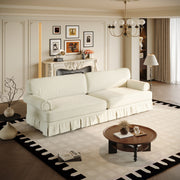 - ELEGANT SKIRT HEM: Designed with a refined drop-edge skirt that brings timeless elegance to your space. The softly draped fabric gracefully touches the floor, highlighting the sofas clean and stable silhouette.