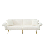 Corduroy Foldable Double Sofa Bed With Folding Armrests For Living Rooms And Small Spaces - White