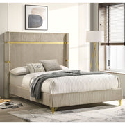 Malcolm - Queen Wingback Bed With Trim - Beige