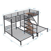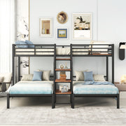 Twin Over Twin & Twin Bunk Bed With Storage Shelves And Staircase, 3 Deck Design - Black