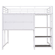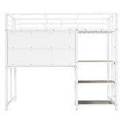 Twin Size Loft Bed With Desk And Whiteboard, Loft Bed With 3 Shelves And Ladder - White