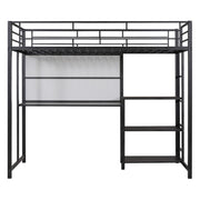 Twin Size Loft Bed With Desk And Whiteboard With 3 Shelves And Ladder - Black