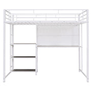 Metal Loft Bed With Desk, 3 Shelves And Ladder