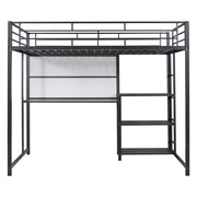 Full Size Loft Bed With Desk And Whiteboard, With 3 Shelves And Ladder - Black