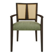 Mid Century Modern Arm Dining Chair (Set of 2) With Rattan Backrest - Dark Brown / Green