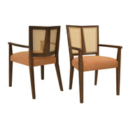 Mid Century Modern Arm Dining Chair (Set of 2) With Rattan Backrest - Caramel / Walnut