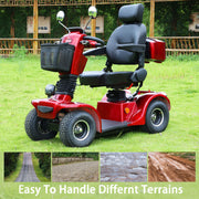 RIDE COMFORTABLY: This easy-to-drive electric mobility scooter. It can help the elderly travel more easily and conveniently is equipped with AT 13*5-6 tubeless tire can be easily driven on grass, roads, parks and beaches.
