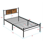 Twin Modern Size Metal Bedframe With Wood Panel Headboard - Black / Brown