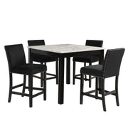 5 Piece Counter Height Dining Set With Table, Tufted Nail Head Chairs - Black / White