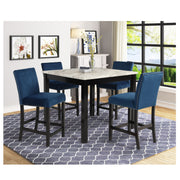 5 Piece Counter Height Dining Set With Table, Tufted Nail Head Chairs - Black / Blue / White