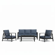 5 Seat Outdoor Patio Furniture Set, Thick Cushions & Coffee Table - Black / Blue