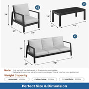 5 Seat Outdoor Patio Furniture Set, Thick Cushions & Coffee Table - Black / Gray
