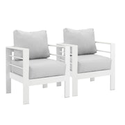 All Weather Patio Armchairs With Thick Cushions (Set of 2) - White / Gray