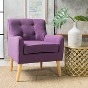 Modern Arm Chair With Tufted Back Fabric And Birch Wood Legs - Purple
