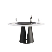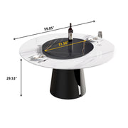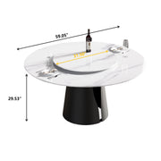 59.05" Modern Artificial Stone Round Carbon Steel Base Dining Table, Can Accommodate 6 People, Black Artificial Stone Turntable - White / Black