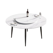 59.05" Modern Artificial Stone Round Metal Dining Table, Can Accommodate 6 People Artificial Stone Turntable - White / Black