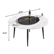 59.05" Modern Artificial Stone Round Metal Dining Table, Can Accommodate 6 People, Artificial Stone Turntable - Black / White