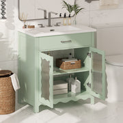 Bathroom Vanity With Glass Doors, Soft Close Hinges - Green