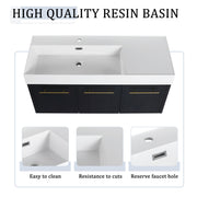 Modern Chestnut Wall Mounted Bathroom Vanity With Left Resin Sink And Storage Rack - Black Chestnut
