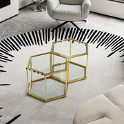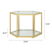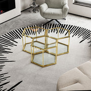 Modern Stainless Steel Coffee Table With Double Layer Tempered Glass And Polygonal Design - Gold