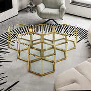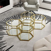 Modern Stainless Steel Coffee Table With Double Layer Glass And Polygonal Design - Gold