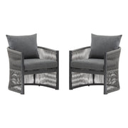 Modern Curved Aluminum Lounge Chair With Rope Weave Design And Cushioned Comfort (Set of 2) - Gray