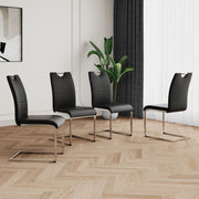 Modern Dining Chairs With Faux Leather Padded Seat Dining Living Room Chairs Upholstered Chair With Chrome Metal Legs Design Side Chairs (Set of 4) - Black / Silver