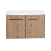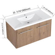 Floating Bathroom Vanity With 36" Cabinet And Resin Sink Soft Close Doors Plywood Construction - Imitative Oak
