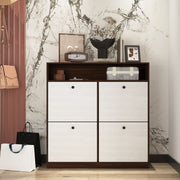 Modern Freestanding Shoe Storage Cabinet With 4 Flip Drawers - Walnut