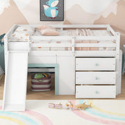 Full Size Low Loft Bed With Slide, Three Storage Drawers, And 2 Doors - White