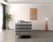Luxurious And Comfortable Upholstered Sofa With Golden Legs And Pillows For Living Room And Reception Area - Gray