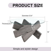 Modern Round Glass Coffee Table With Tempered Glass Top And Patterned Legs - Gray