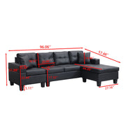 Modern Sectional Sofa Set With L Shape Chaise Lounge, Cup Holder, 4 Seat - Black
