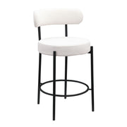 Modern Counter Height Stools, Uphsoltered Seat Barstools With Round Low Back Kitchen Stools With Footrest For Dining Room (Set of 2) - White