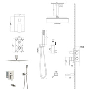 Modern Shower System With Waterfall Tub Spout, 12" Ceiling Mount Square Shower - Brushed Nickel
