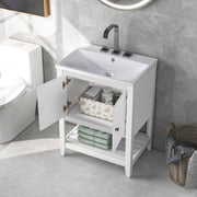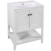 Modern Sleek Bathroom Vanity Elegant Ceramic Sink With Solid Wood Frame Open Style Shelf - White