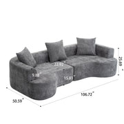 Modern Style Curved Sofa, Soft Cushioned Corduroy Sofa With 3 Pillows, Living Room Super Smooth Curved Fabric Sofa - Gray