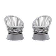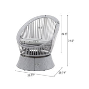 Modern Swivel Wicker Lounge Chair Set With Rattan And Iron Frame, Round Design - Gray