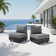 Modular Armless Chairs With Coffee Table For Garden (Set of 2) - Gray