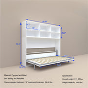 Mordern Design Twin Size Horizontal Murphy Bed With Shelf Storage For Bedroom Or Guestroom Wall Bed Space Saving Hidden Bed With New Style Gas Struts - White