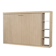 Full Size Murphy Bed With Bookshelf And Storage - Natural