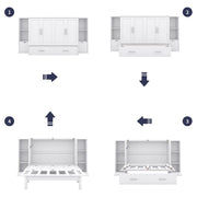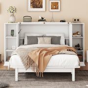 Queen Size Murphy Bed With Shelves, Drawers And USB Ports - White