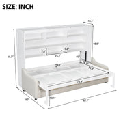 Queen Size Murphy Cabinet Bed With Folding Sofa, Built In Storage Shelves And LED Light - Beige