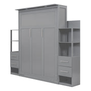 Queen Size Murphy Wall Bed With Shelves, Drawers And LED Lights - Gray