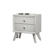 Nightstand With Angled Legs, Round Knobs, Wave Texture, 2 Drawer Bedside Table - White