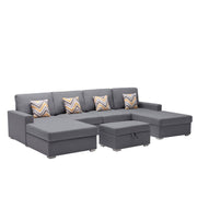 Nolan - 5 Piece Double Chaise Sectional Sofa With Interchangeable Legs, Storage Ottoman, And Pillows - Gray