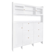 - All in One: This large cabinet incorporates the multi-functional design of shoe rack, bookshelf and display cabinet. And with 4 hang hooks, it can also place your hats, keys and bags.