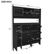 Multifunctional Tipping Bucket Shoe Cabinet With Storage Shelf & 6 Flip Drawers, Large Hall Tree With Tempered Glass Doors, Foyer Cabinet With 4 Hooks For Hallway - Black