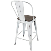 Oregon - Industrial High Back Counter Stool (Set of 2) - Vintage White / Espresso
