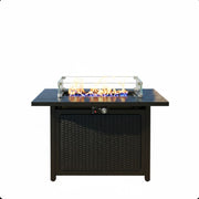 Outdoor 2 In 1 Propane Fire Pit Table With Lid & Glass Shield, Rectangular Fire Table, Lava Rock & Cover - Black